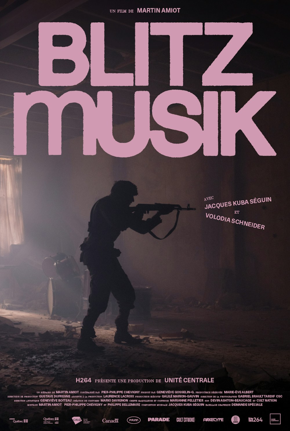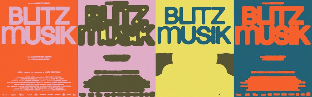 Habillage visuel, animation et affiches pour BLITZMUSIK un film de Martin Amiot produit par Geneviève Gosselin-G. Présenté par h264 distribution produit par Unité Centrale films.