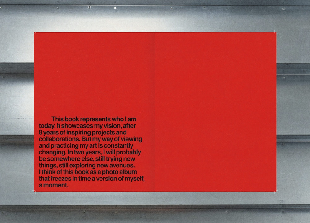 Ce livre fait un peu suite aux archives "THEN-NOW" qu'on avait conçues pour lui il y a quelque temps, mais il a surtout été conçu pour vivre par lui-même. L'idée était de créer un impact solide dans l'industrie, ce qui s'est traduit par un objet intitulé "NOW". On voulait que le design soit simple, mais fort, afin de mettre en valeur et d'enrichir son travail.